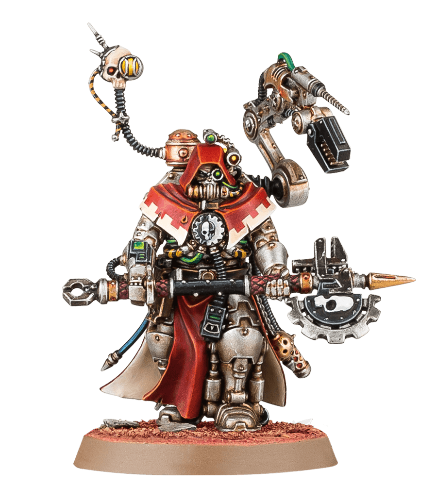 An Adeptus Mechanicus army in the field resembles a bizarre and grotesque religious procession. Rank upon rank of cyborg Skitarii march tirelessly into the teeth of rival guns, or ride to battle aboard Skorpius Duneriders, raising binharic hymns to the glory of the Omnissiah as their radium carbines and galvanic rifles howl and crack. You can support your masses of augmetic soldiers with maniples of battle robots – ancient Cybernetica war constructs driven by clattering difference engines – as well as insectoid walking tanks, Kataphron servitors or other lethal war machines.
