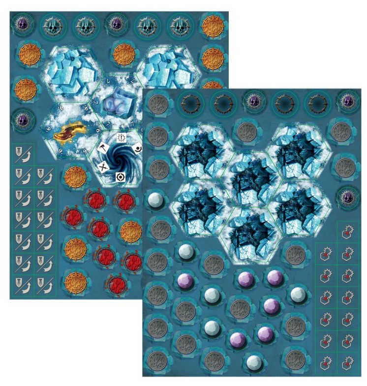 - 2 double-sided game boards to represent the frozen tunnels of Deathgorge