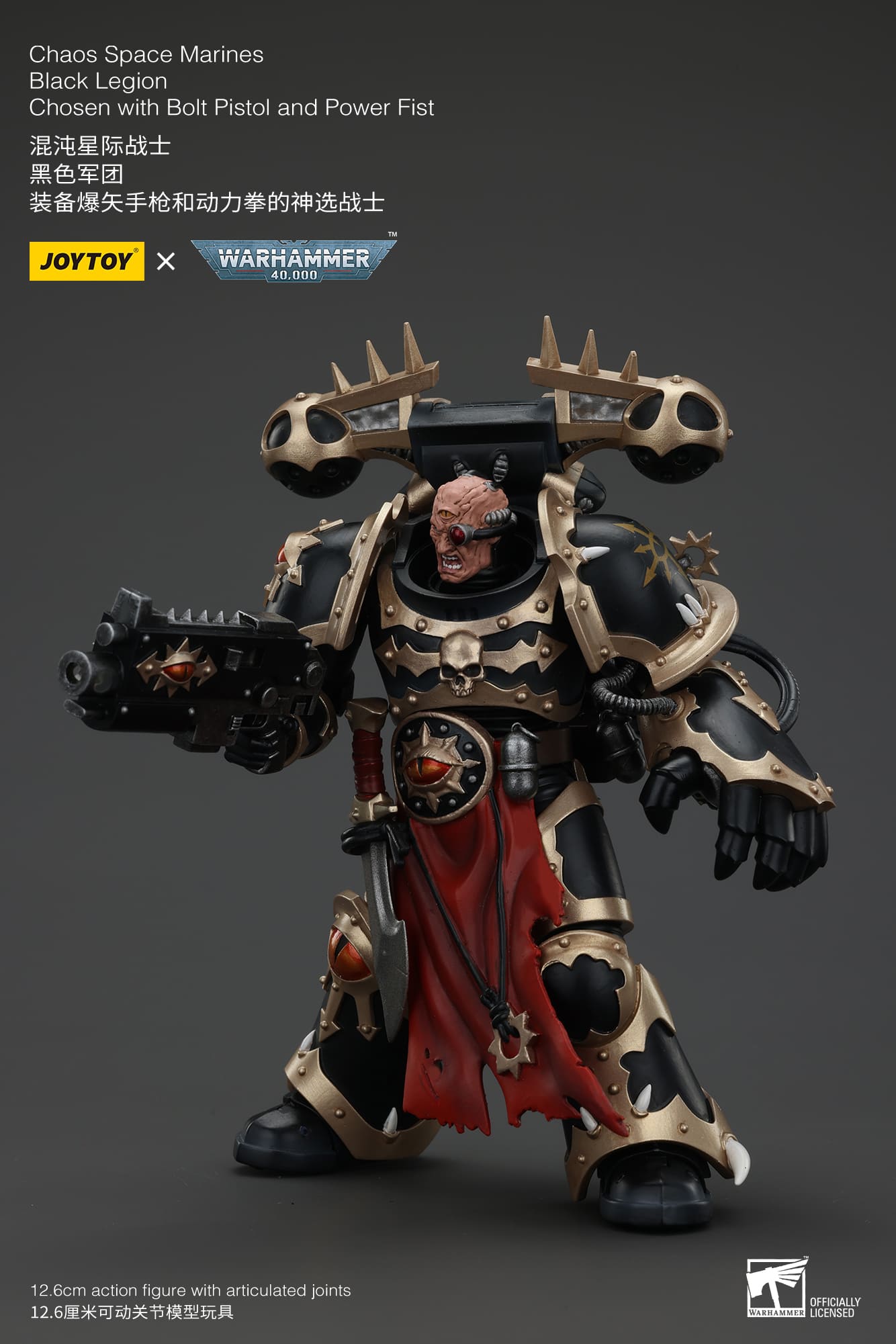 Dominate the battlefield with the JoyToy WH40K Chaos Space Marines Black Legion Chosen. Armed with a Bolt Pistol and a Power Fist, this highly detailed figure captures the brutal essence of the Black Legion. A must-have for Warhammer 40K enthusiasts and collectors.